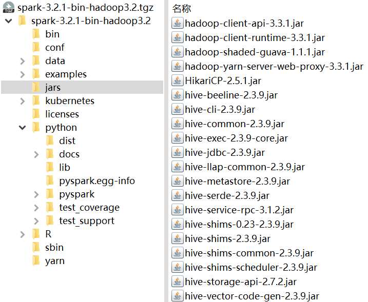 Spark-3.2.1-bin-with-hadoop-3.2安装包内截图(对照上图看看,怎么好意思说自己是3.2的,里面明明是3.3.1)